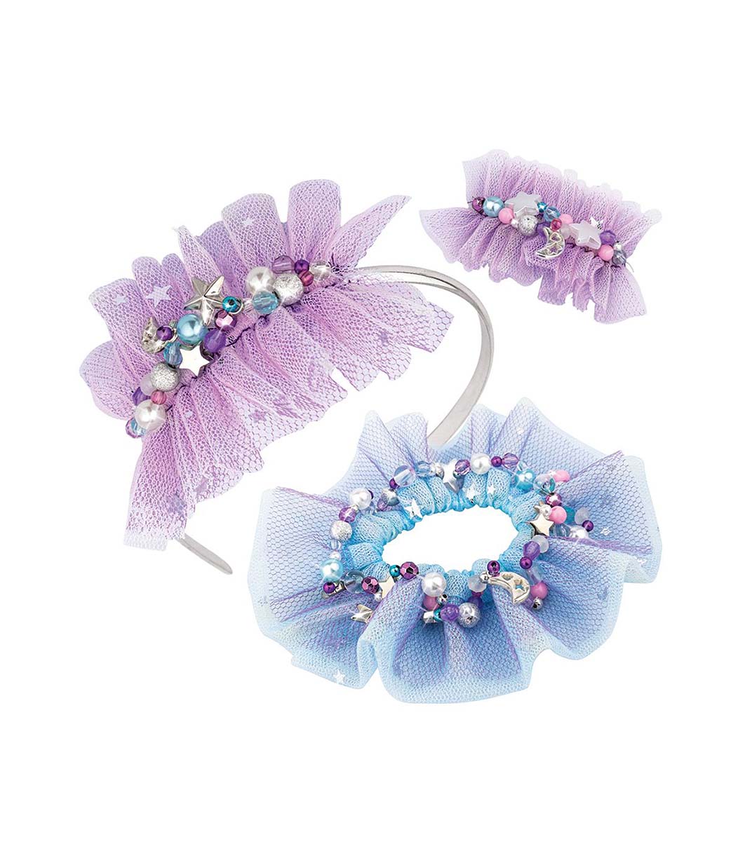 С този комплект принцесата ви ще има възможност да създаде свои аксесоари за коса, с които да си прави хубави прически. Ще има възможност да се забавлява, правейки украшения, които след това да носи с удоволствие.