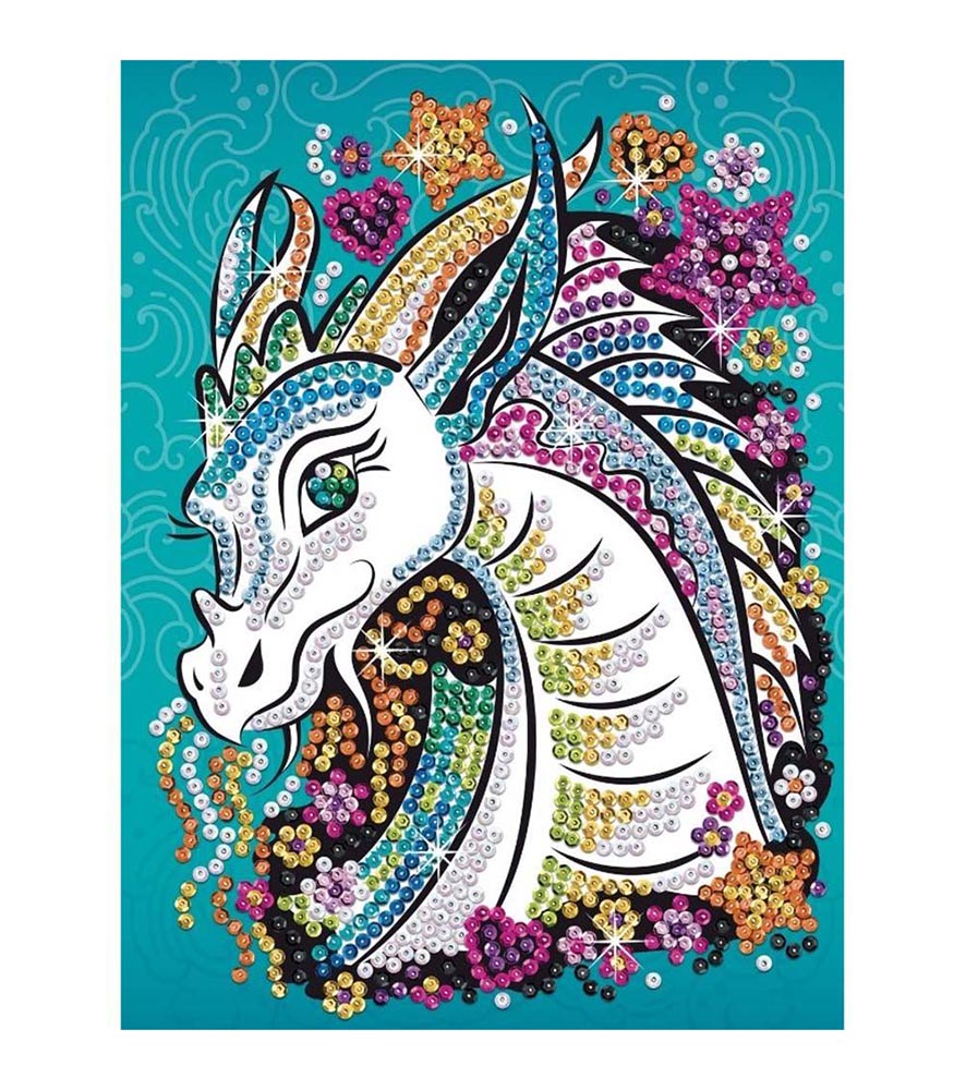 Изберете си цвят на пайетите и започнете да създавате своята картина като промушвате карфица през всяка пайета. Съчетайте цвета на пайетата с цвета от кръгчето. Забодете силно карфицата през точката в центъра на кръгчето и я натиснете до долу, за да закрепите пайетата стабилно. Ако направите грешка, лесно можете да я поправите - просто извадете карфицата и сменете или преместете пайетата.