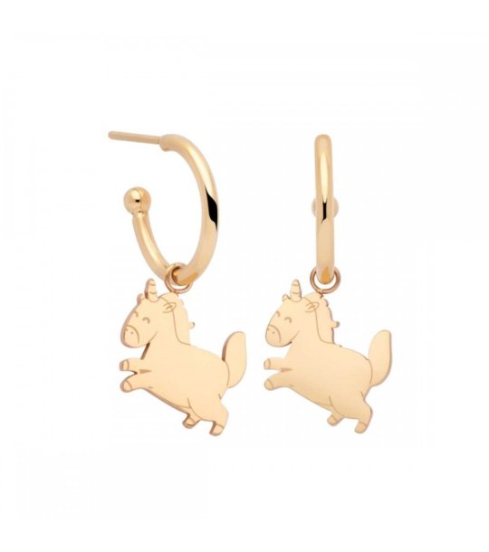 Обеци с кръгла форма и висящи елементи представляващи еднорози. Подходящи за ежедневно носене, добавяйки игрив акцент към визията.