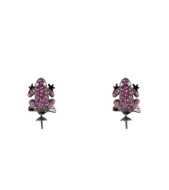 Обеци във формата на жаба, инкрустирани с бляскави камъни. Детайлна изработка, която привлича вниманието.