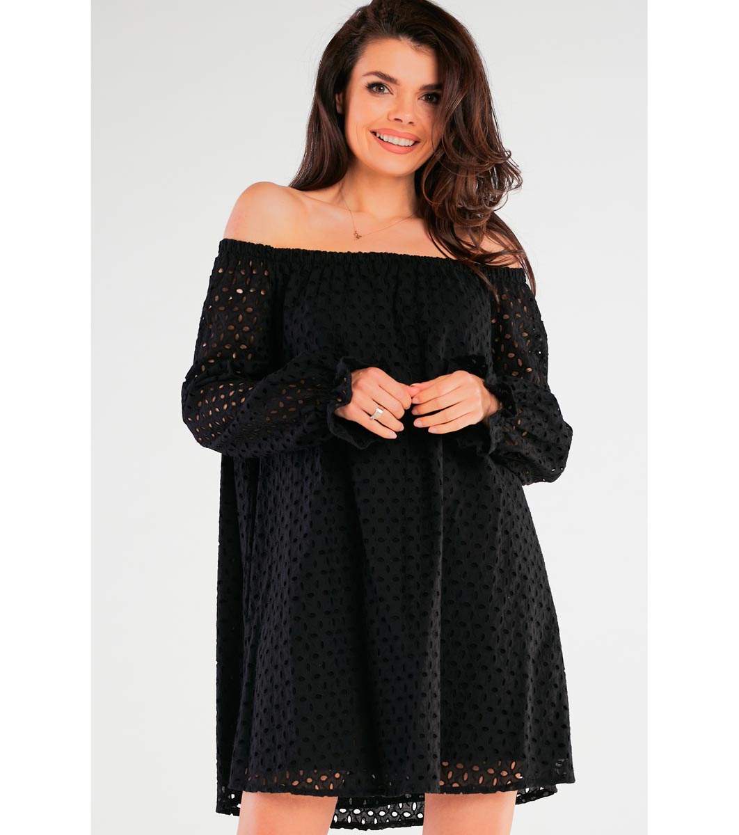 Памучна рокля с перфорации в черно Persy