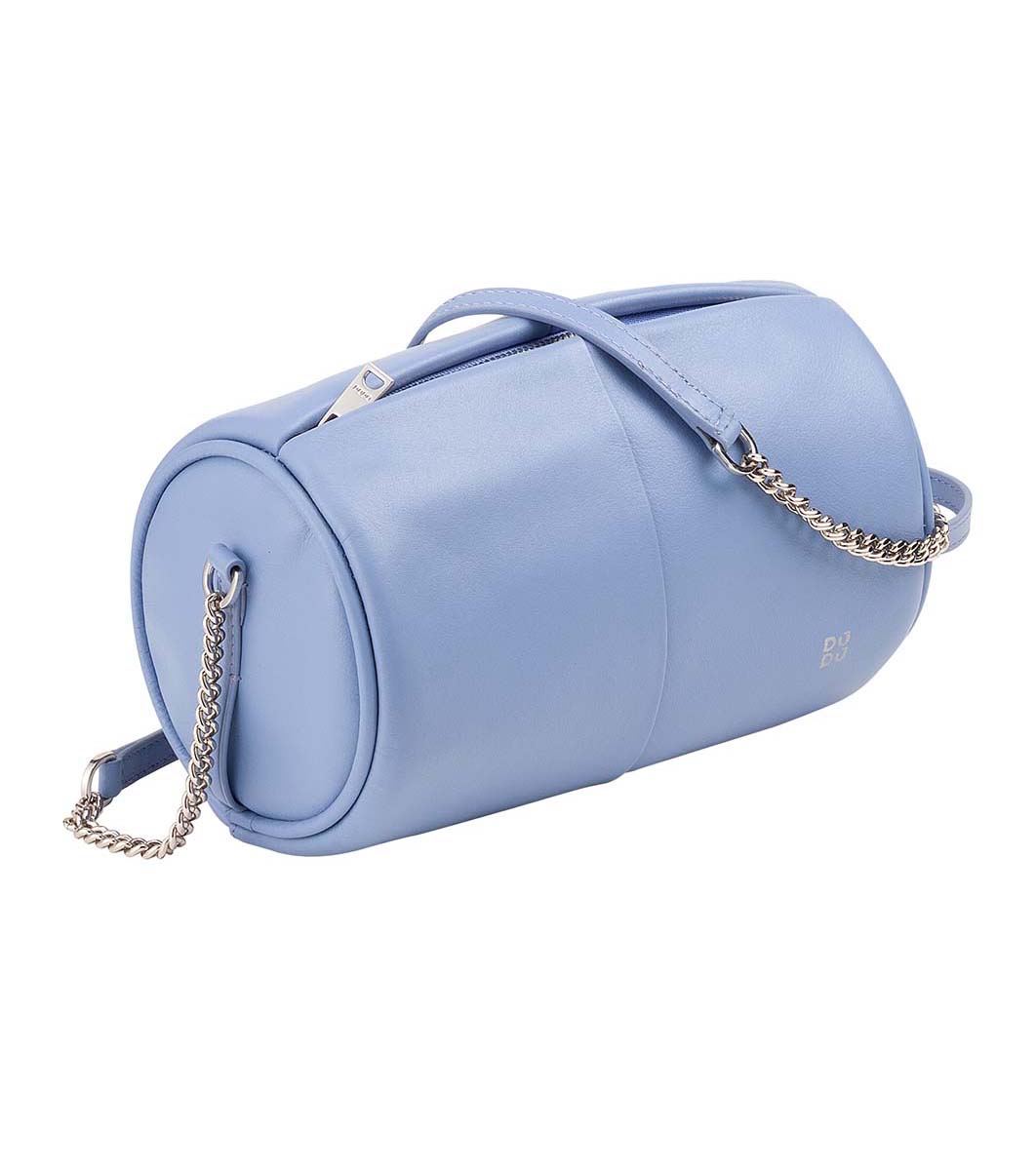 Пастелносиня дамска цилиндрична кожена чанта Abigail