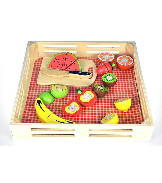 Предоставете на децата възможността да "сварят" техен собствен вкусен конфитюр. В комплекта за рязане ще откриете 8 различни плода (ябълка, круша, киви, лимон, диня, ягода, банан и портокал) нож, дъска, касетка за плодове и покривка.