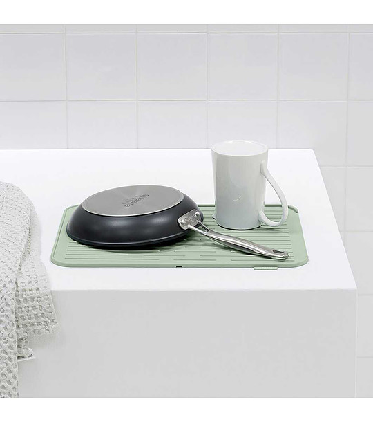 Тази подложка за изцеждане на съдове от Brabantia е направена от мек силикон, който не дере и не се хлизга по кухненския ви плот. Освен това, благодарение на фината си изработка и качествения си материал, изглежда чудесно, почиства се удобно и не се захабява лесно и бързо.