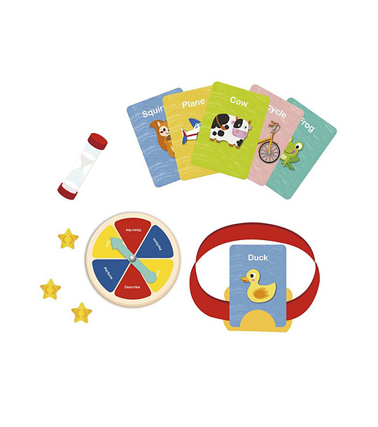 Едното дете си слага лентата и тегли карта, която да сложи на нея, а другите деца трябва да му подскажат кое животно е без да му казват. Детето трябва да познае преди да му изтече времето.