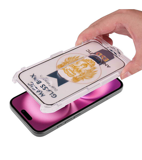 • Перфектно пасващ дизайн: Прецизно изрязване за пълно покритие на екрана, без компромис с чувствителността на допир на вашия iPhone. Лесен монтаж: С включената водеща рамка монтажът е бърз и прецизен, без грешки при поставянето.