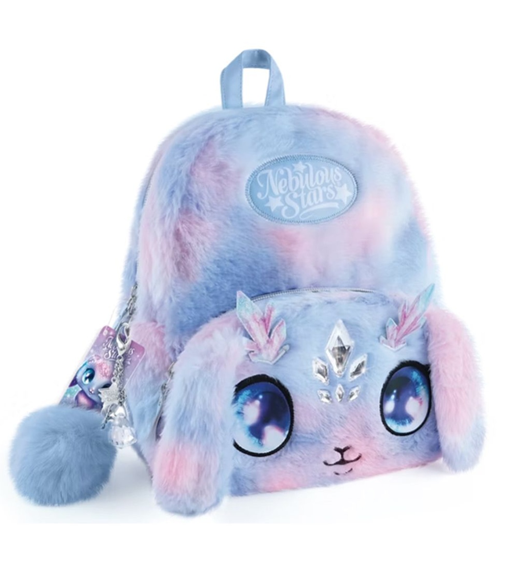 С тази очарователна пухкава раница с дизайн на Agatha от вълшебния свят на Nebulous Stars, всяко дете ще се почувства специално. Идеална както за разходки и пътувания, така и за училищни дейности или ежедневна употреба, тя комбинира практичност с мечтателна визия. Изработена от ултра мека изкуствена козина, тази мини раничка се отличава със своето качество, нежни цветове и сладка форма.