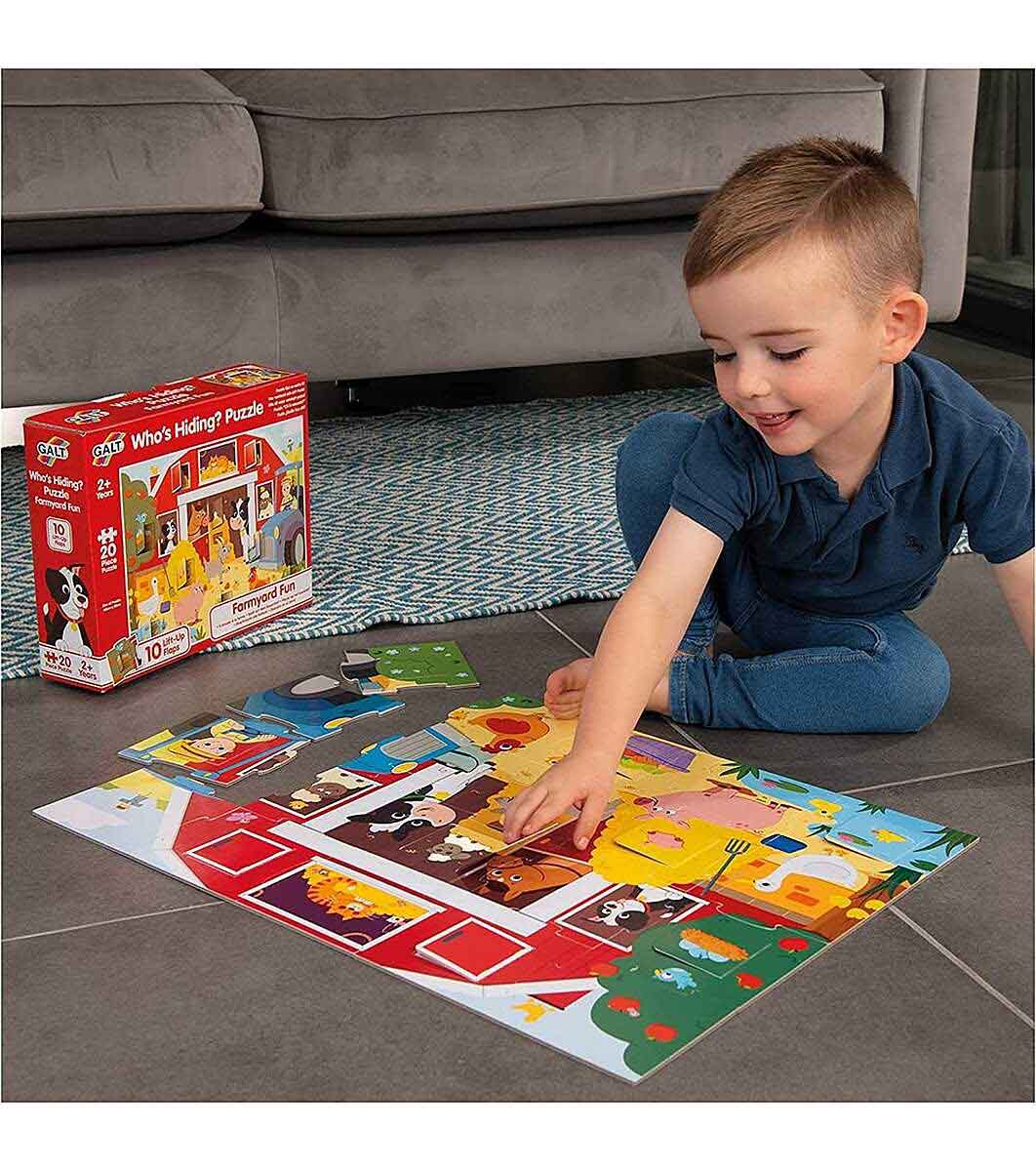 Пъзелът е във формата на ферма и има 10 капачета, които скриват различни животни.