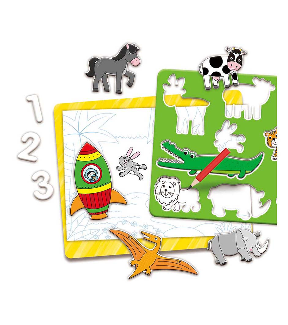 Това е забавен комплект с магнитни шаблони, с които децата ви ще научат животните от фигурките и ще се забавляват докато лепят магнитите.