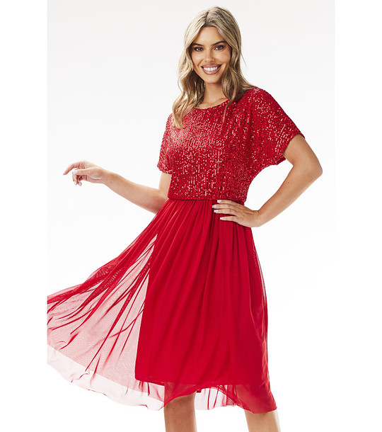 Рокля в червено с пайети Rina