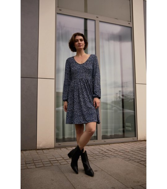 Рокля с дълги ръкави в син нюанс