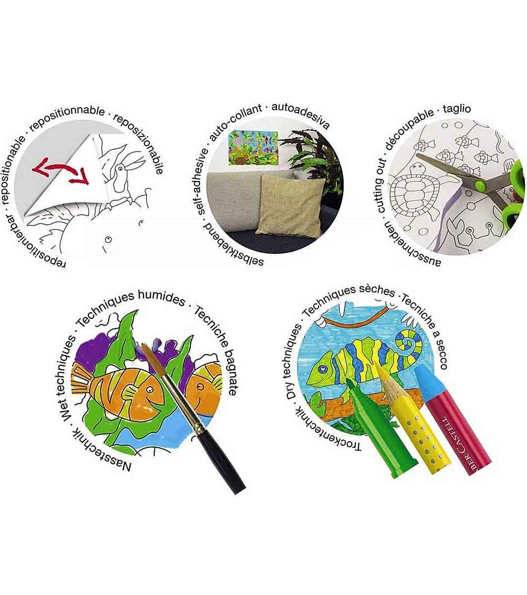Предлагаме на Вашето внимание едно истинско предизвикателство за всички малки художници. Руло със черно-бели самозалепващи се стикери, които можете да залепите на стена или друга повърност и Вашият малчуган да оцвети. Фолиото можете да залепите върху стена, стъкло, маси и други мебели с равни повърхности. Много забавни дизайни - животни, растения, приказни и фантастични герои, очакват Вашето въображение и сръчни ръце. Стикерите се отлепват лесно и са напълно безопасни, лепилото е на водна основа, без разтворители. Стикерът не поврежда повърхността след отлепване. Може да се залепи цял или да се изрязват части.