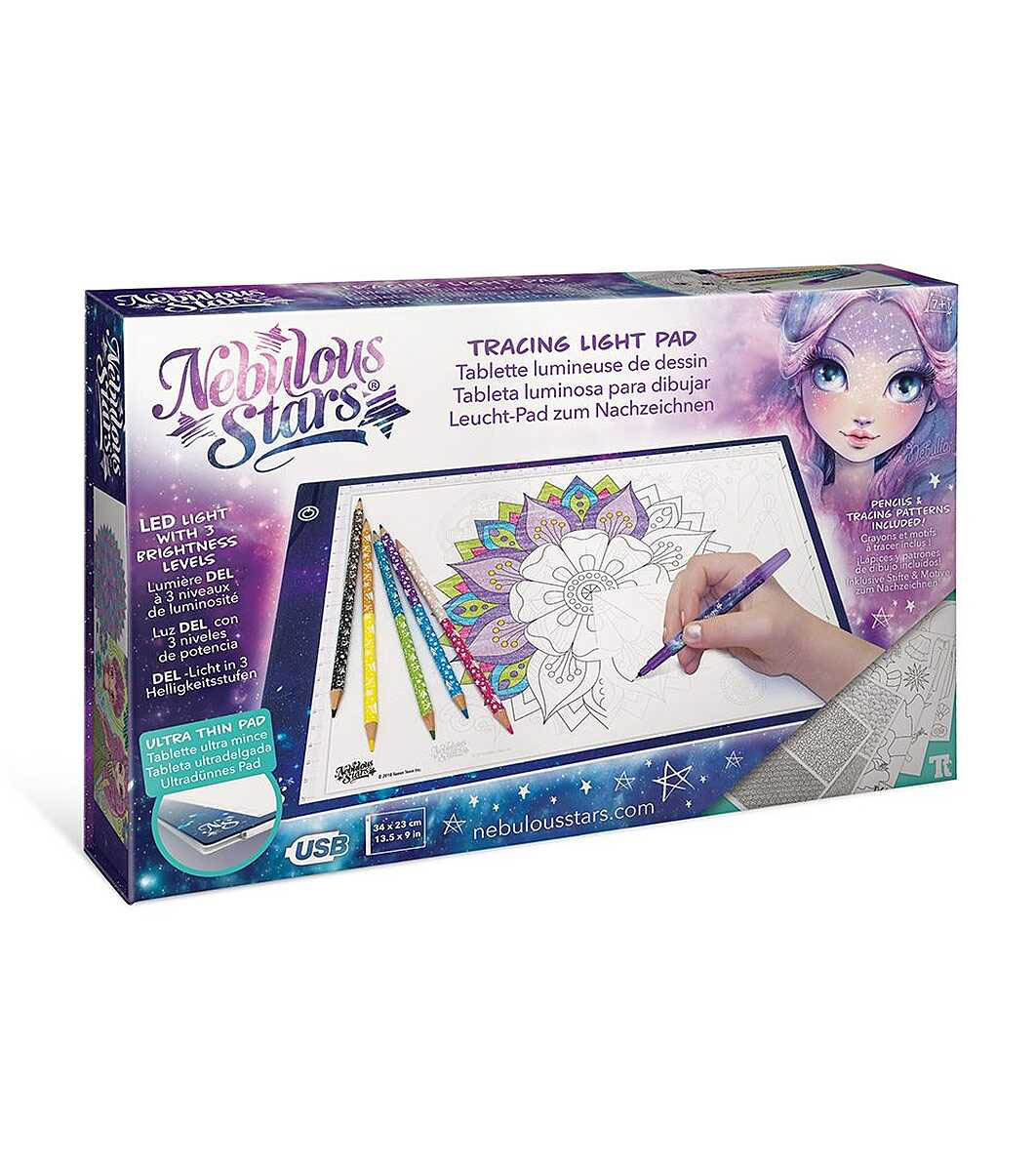 Детето ви обича ли да рисува? Искате да подобри своята техника?Дайте възможност на малкото ви момиченце да се научи да рисува принцеси с помощта на тази подложка за прекопиране и рисуване. С този комплект децата ще могат да се научат да рисуват, като поставят шаблона върху светещата подложка с USB кабел и върху него бял лист, на който да прекопират интересните картинки. След като прекопират някоя принцеса могат да я оцветят с интересните цветни двустранни моливи.Марката Nebulous Stars предлага интересни продукти на децата, насърчава творчеството и въображението.