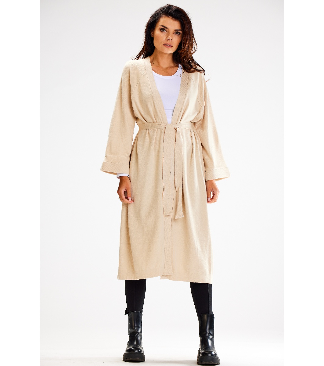 Светлобежова дълга дамска жилетка Bonnie