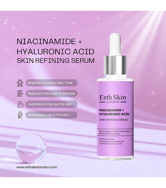 • Серумът за пречистване на кожата с ниацинамид и хиалуронова киселина е лека, бързоабсорбираща се формула, предназначена да хидратира, изсветли и изглади кожата.