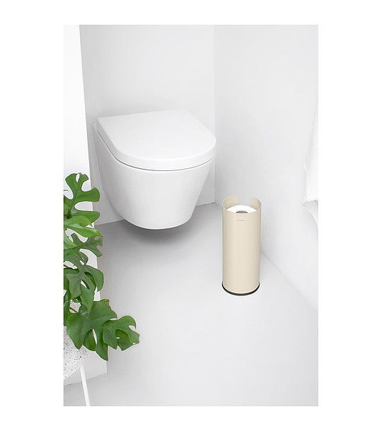Свободно-стоящият диспенсър за резервни рула тоалетна хартия на Brabantia е подходящ за съхранението на до три ролки тоалетна хартия.