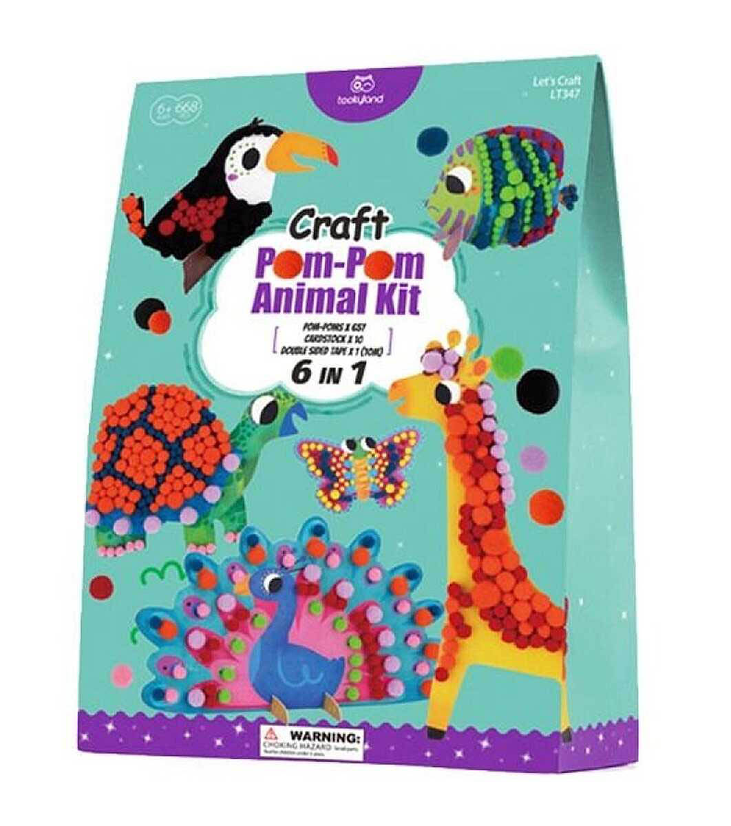 Предизвикателството тук е да се украсят 6 шаблона с животни. Имате на разположение ефектни, мекички помпони, в различни цветове и размери и двойно залепващо тиксо.
