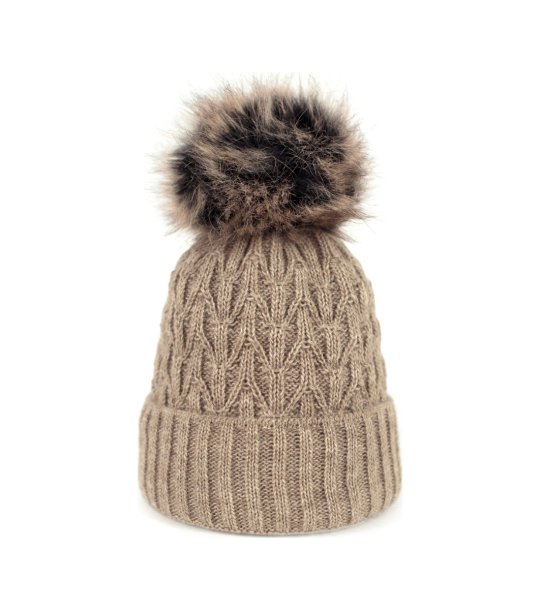 Тъмнобежова зимна шапка с помпон