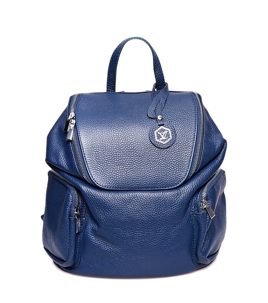 Тъмносиня дамска кожена раница Emilia