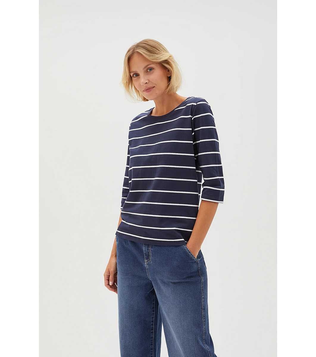 Тъмносиня дамска памучна блуза на бяло райе