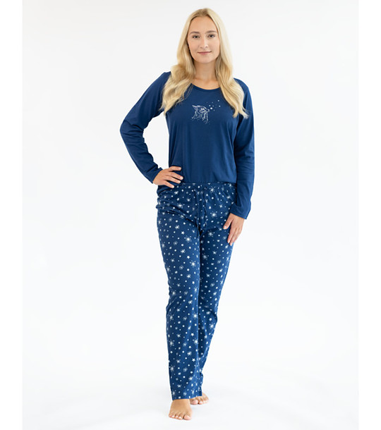 Тъмносиня дамска пижама от памук с принт