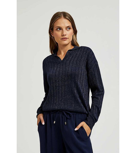 Тъмносин дамски пуловер с блестящи нишки Anna