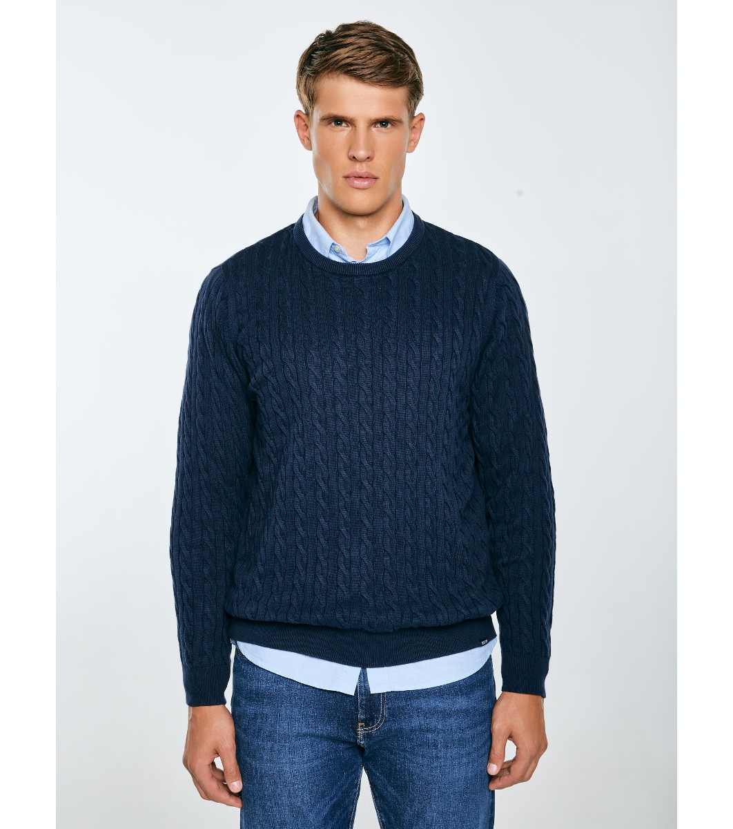 Мъжки плетен пуловер с обло деколте.