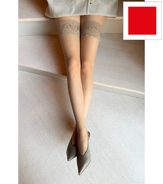 Червени чорапи 15 DEN SILVI с дантела
