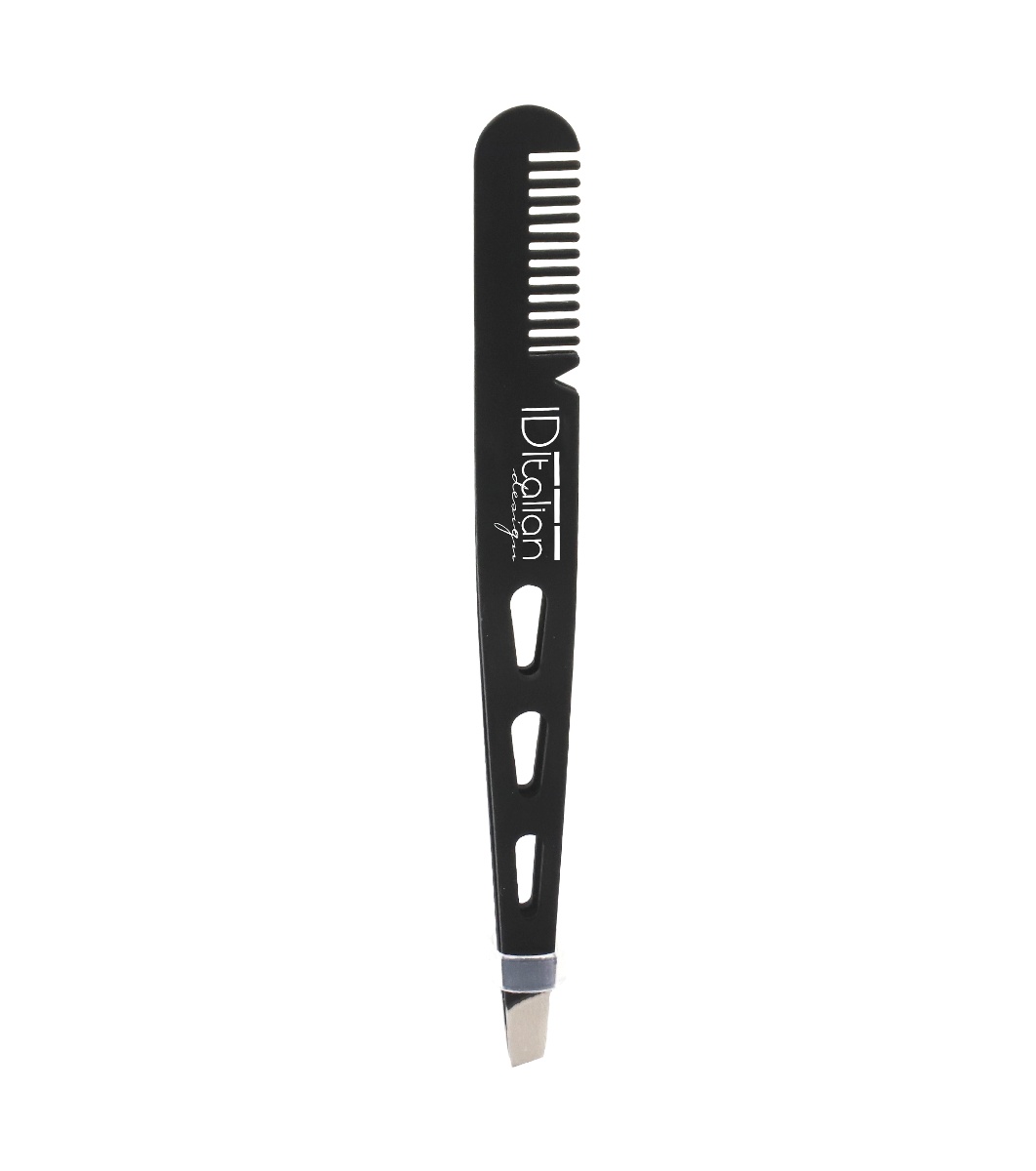 • Пинсета за вежди от стомана с интегриран гребен в единия край.