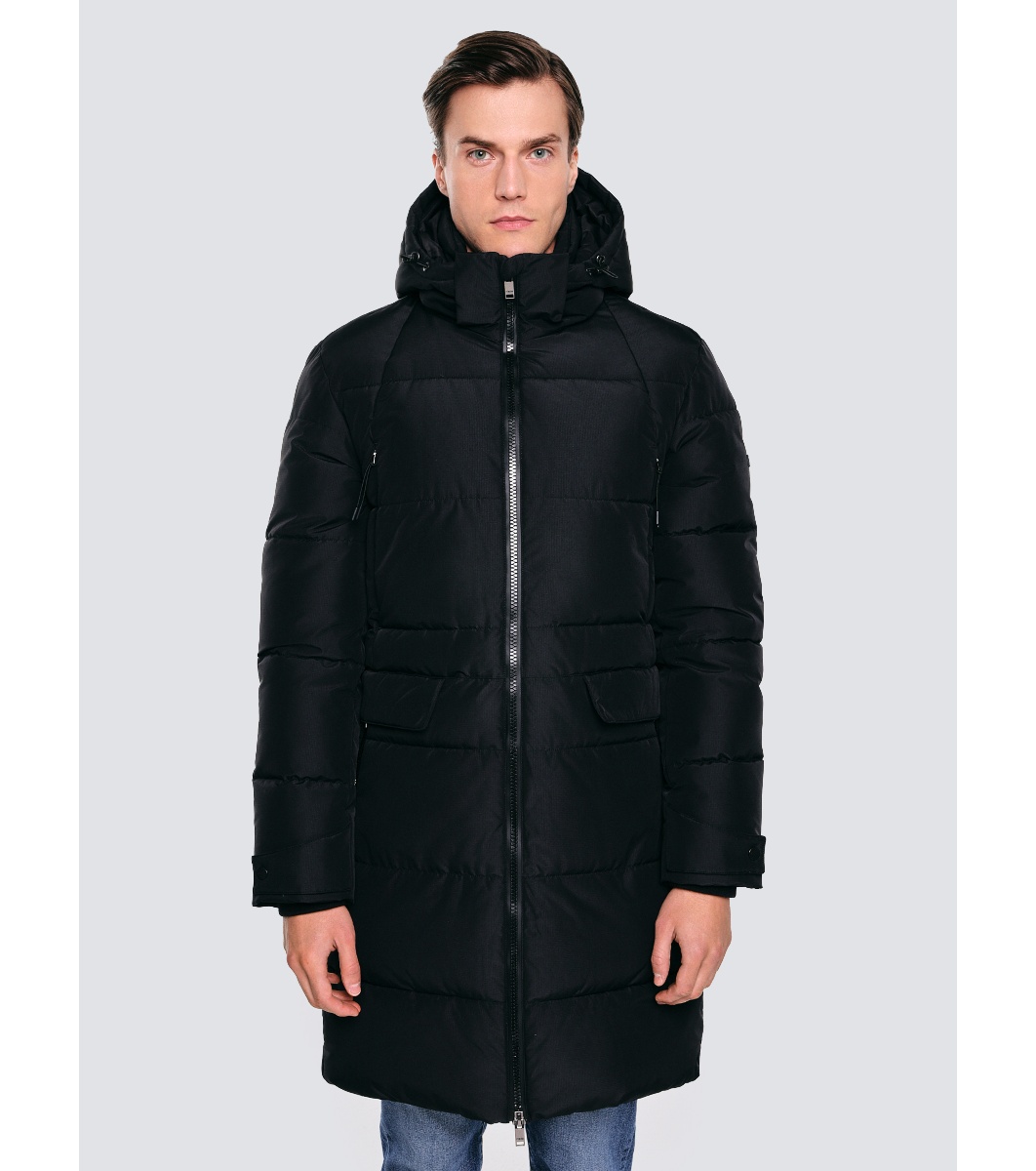 Дълго мъжко подплатено яке с права линия и стегнат силует