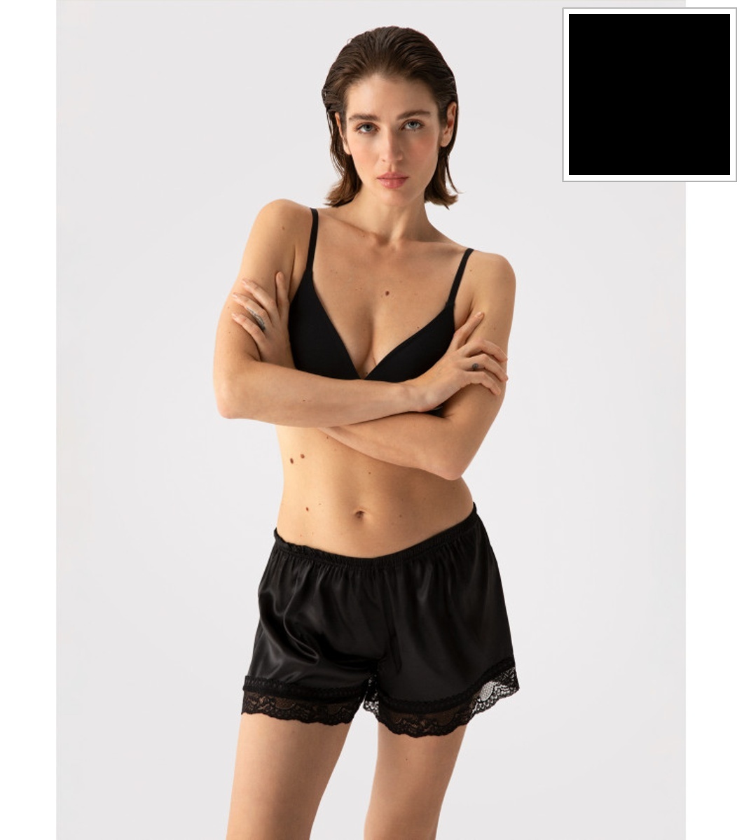 Сатенени шорти с права, свободна кройка и удобен ластичен колан.