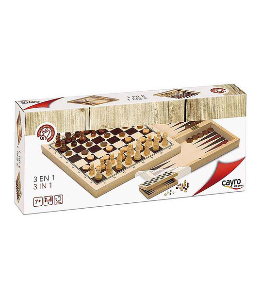 Искате ли детето Ви да научи основните правила в шаха?Искате ли да го научите и да стане добър играч? Искате ли да се забавлявате докато играете? Това е комплект с едни от най-популярните настолни игри. Те са интересни и вълнуващи. С тях децата ще могат да научат полезни неща докато играят. Защо да закупите Шах, табла и дама 3 в 1 Играта на шах привлича милиони хора по цял свят, за да покаже цялата магия, която носи в себе си. Тя е една от най-интересните логически игри, която вдъхновява играчите да прекарват голяма част от времето си, местейки фигурите по шахматната дъска. Ако искате един ден детето ви да владее играта до съвършенство, то нашият съвет е още от ранна детска възраст да го запознаете с правилата.