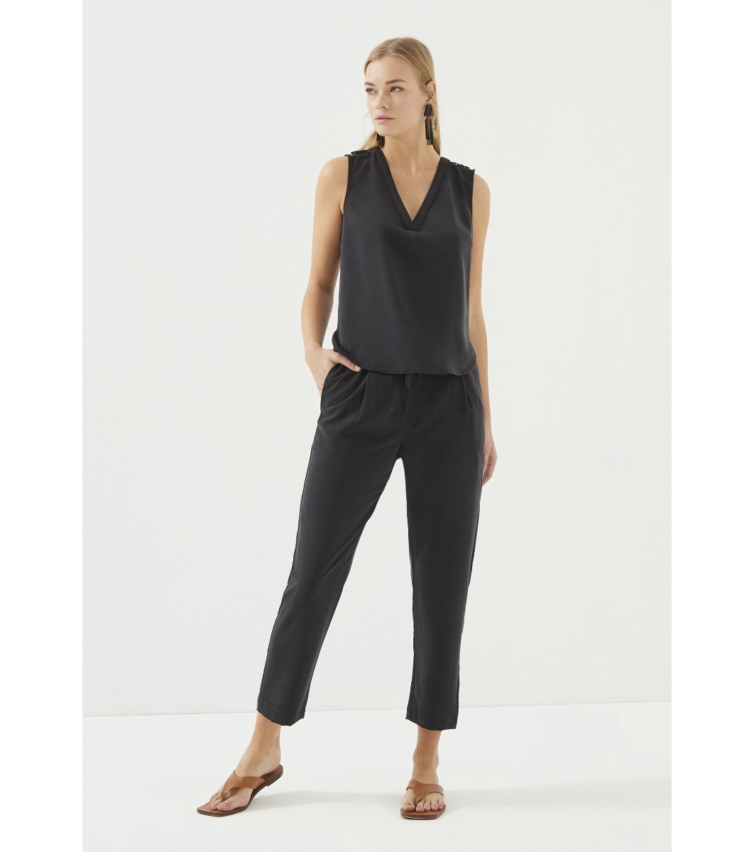 Woven Fabric, Ornamental Belted With A Metal Ring, Front Pockets, Fake Welt Rear Pockets, Zip And Hook Fastening.