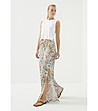 Woven Fabric, Elasticated And Drawstring Cord Waist, Side Slit Detail, Flower Patterned, Loose Fit, Wide Leg Trousers.