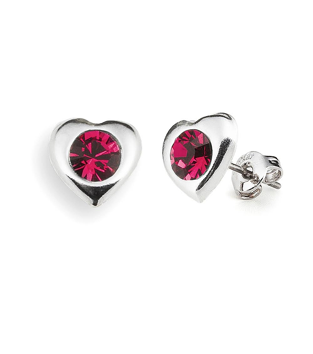 Pendientes clásicos en forma de corazón y con cristales de Swarovski en color rojo en plata 925. Material: plata 925 y cristales de Swarovski Medida pendiente: 5,5mm Tipo de cierre: presión Incluye caja