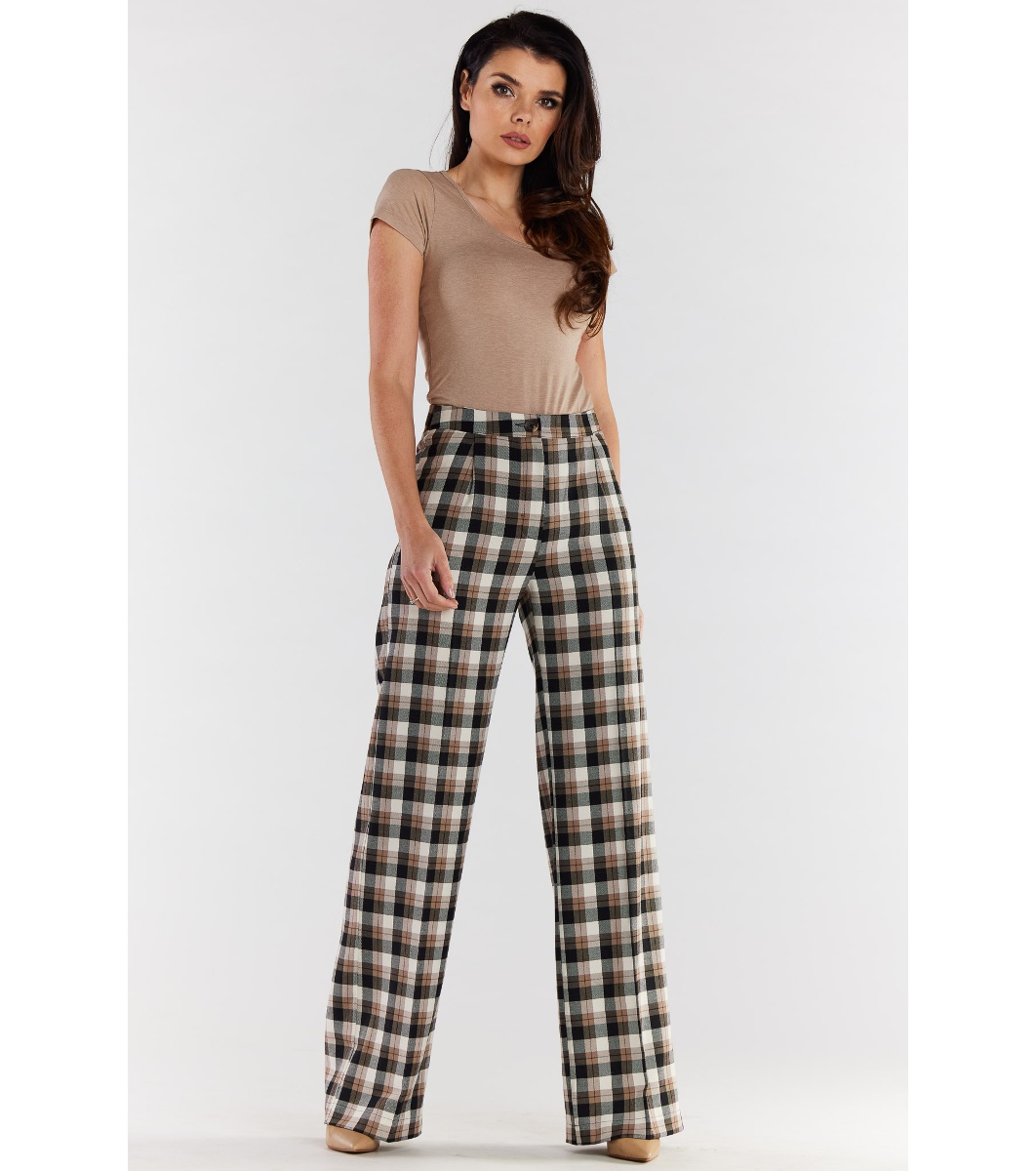 High-waisted pants with wide legs without pockets. Pants with zipper and front button. They look perfect with a jacket of the same color, model A491 Composition: 69% polyester, 32% viscose, 3% elastane Designed and sewn in Poland Presented size: S, model's height: 172cm High-waisted pants with wide legs without pockets. Pants with zipper and front button. They look perfect with a jacket of the same color, model A491 Composition: 69% polyester, 32% viscose, 3% elastane Designed and sewn in Poland Presented size: S, model's height: 172cm
