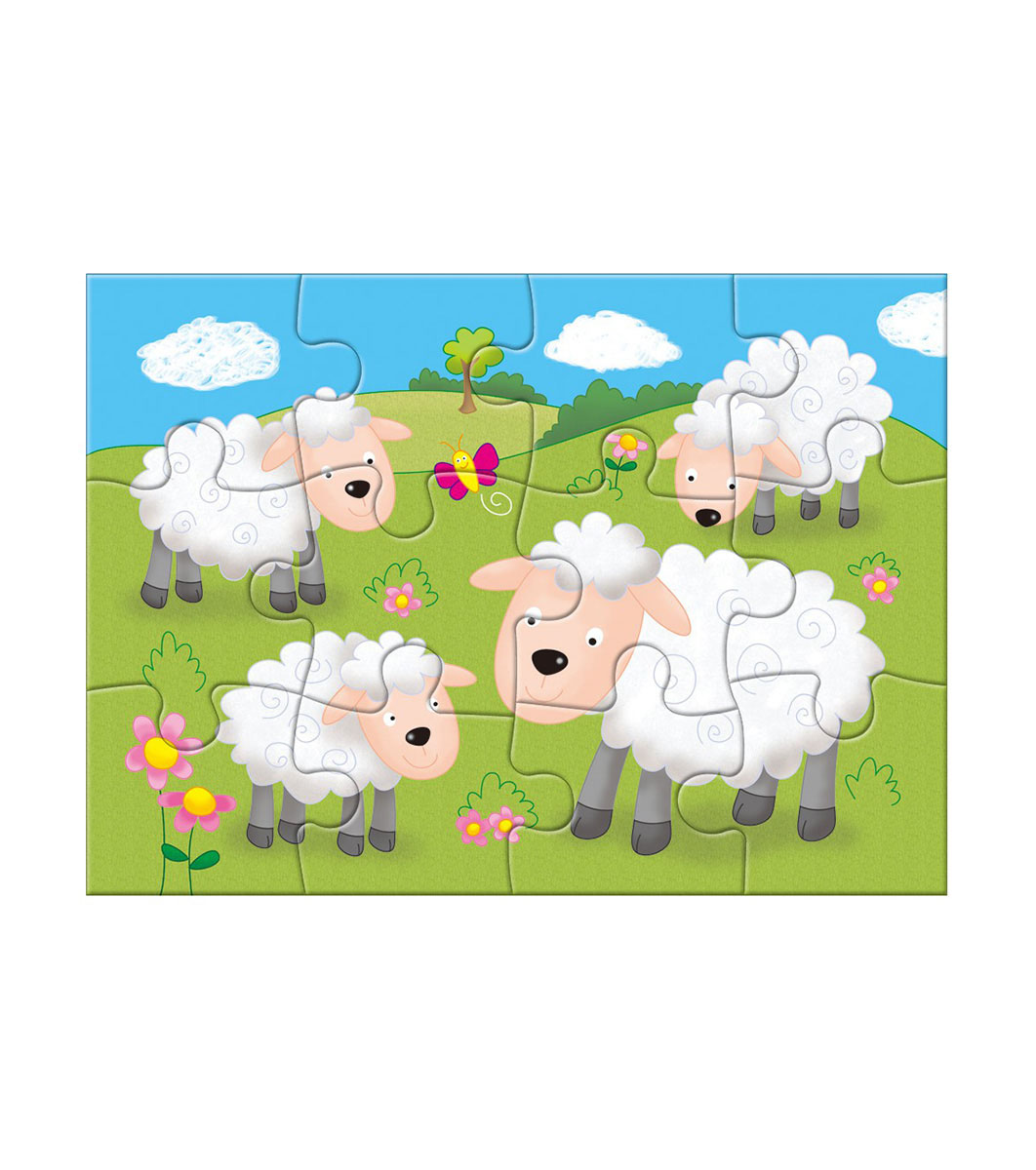 Комплект от 4 пъзела с животните от фермата. Всеки от пъзелите има различен брой части – 4, 6, 8 и 12.