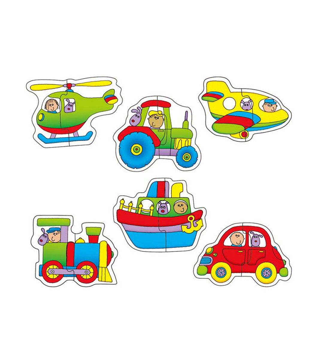 Комплект от 6 пъзела с превозни средства за най-малките. Всеки от пъзелите се състои от две части с добре подбрани цветове, така че детето лесно да ги различава.