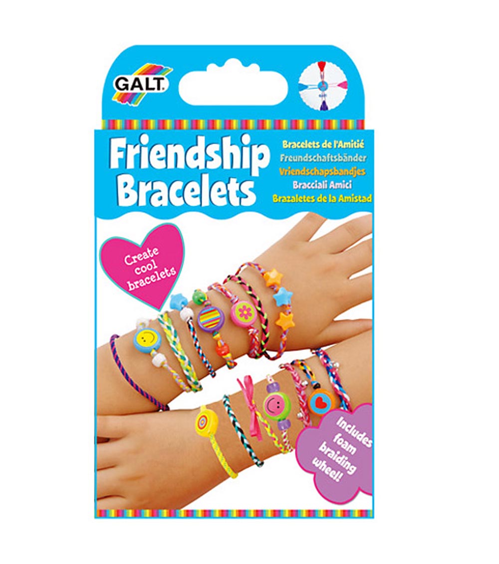 Съдържание: 60 м памучни конци в разнообразни цветове, сатенена панделка, различни по-размери и цветове мъниста, стикери, колело за сплитане, игла, упътване.