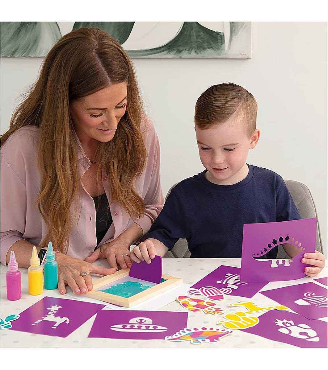 Вдъхновява децата да изследват своята креативност и да изградят умения за занаяти. Ще могат да избират сред набор от 8 шаблона и 3 цветни мастила, за да създадат готини дизайни.