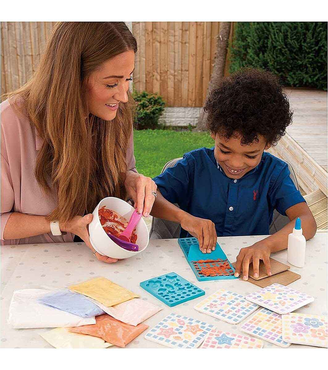 В комплектът ще намерите форми, материал за мозайките, шаблони, талашитени подложки, шпатула и лъжици.
