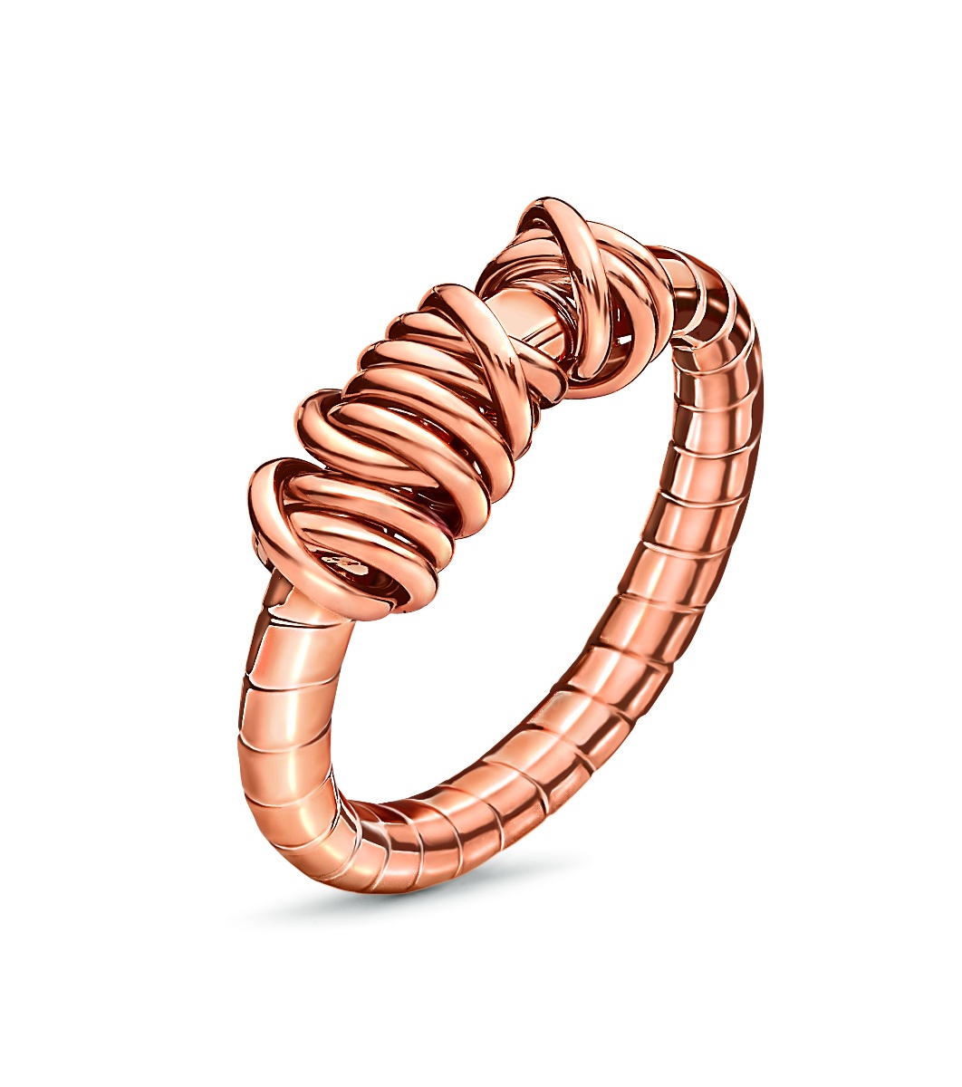 Елегантен пръстен с уникален дизайн, подходящ за различни поводи. Изглежда стилно и модерно с извити елементи.