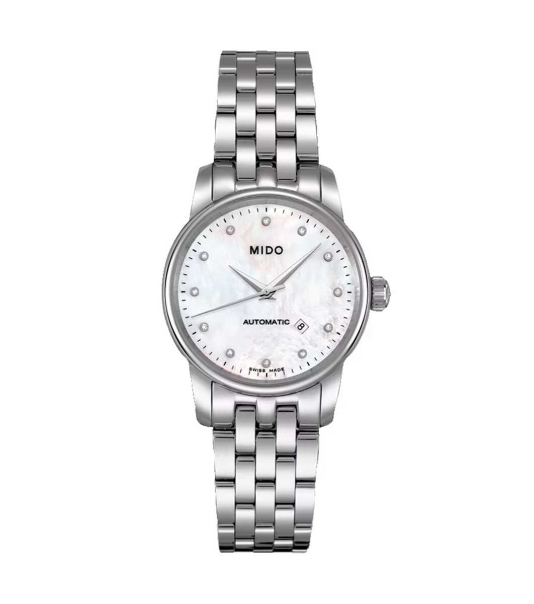 Елегантен дамски часовник с автоматичен механизъм и аналогов дисплей. Верижката е с класически дизайн, а циферблатът е декориран с индекси за часа. Има функция за показване на датата.