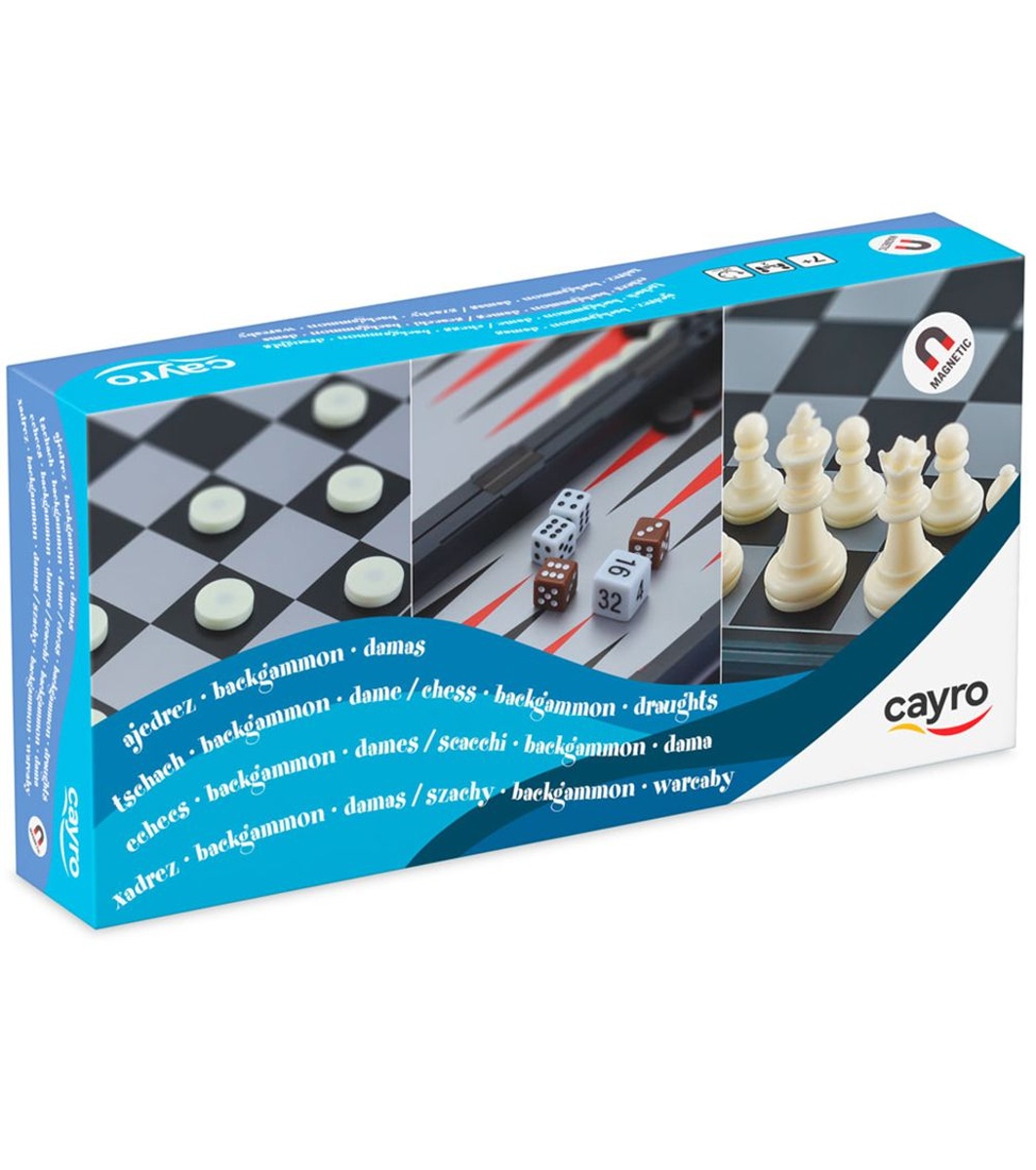 Магнитен комплект 3 в 1: Шах, Дама и Табла от Cayro е идеалният избор за всички любители на класическите настолни игри.