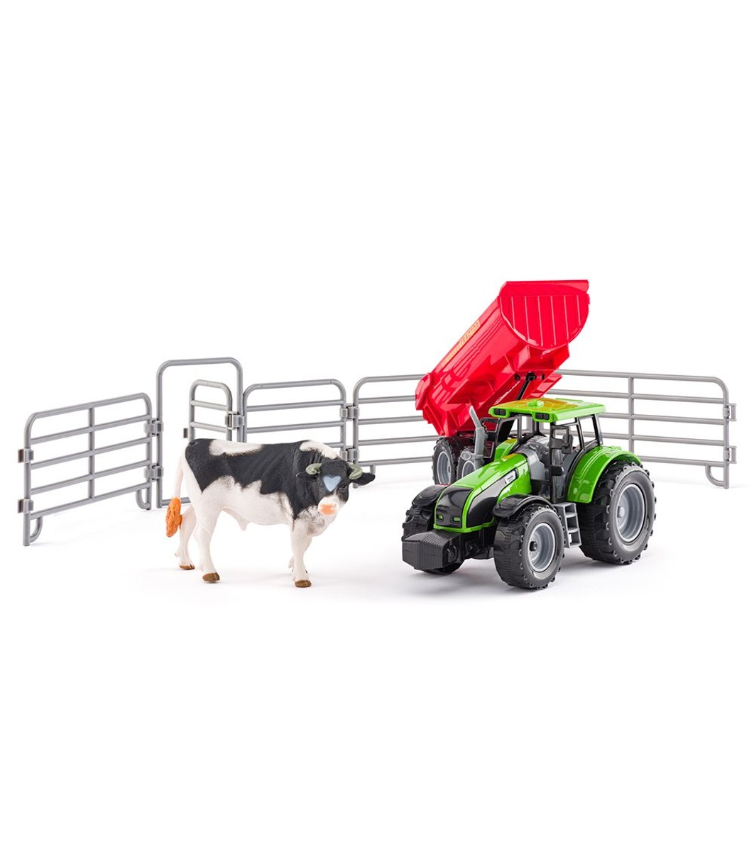 За още по-забавна игра с Вашата ферма със животни предлагаме този комплект, който включва трактор, бик и огради.