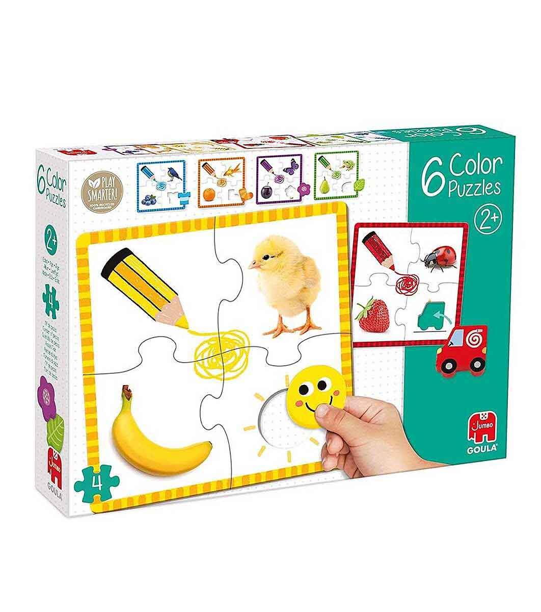 Комплекта включва 6 различни пъзела. Всеки пъзел се състои от 4 части, като всеки от тях е в различни цветове: жълт, син, зелен, оранжев, лилав и червен.