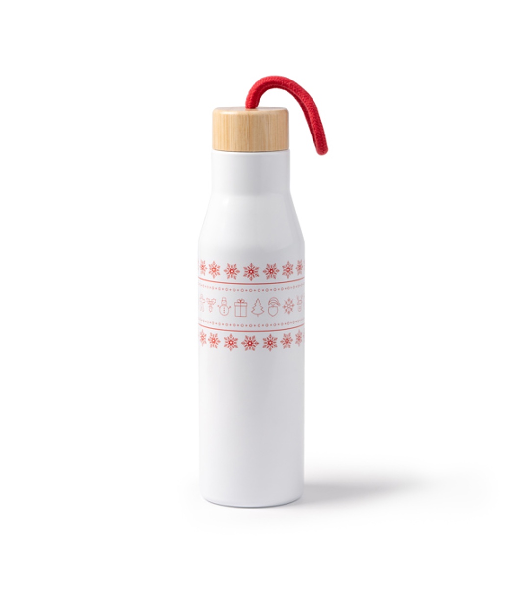Двустенна бутилка от неръждаема стомана с бамбукова капачка.