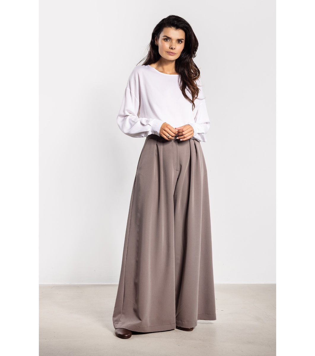 Eleganckie spodnie damskie z szeroką nogawką i wysokim stanem Opis:Stylowe spodnie z szerokimi nogawkami łączą wygodę z elegancją. Wysoki stan podkreśla talię i optycznie wydłuża sylwetkę, a rozszerzane nogawki nadają lekkości i nowoczesnego charakteru. Model sprawdzi się zarówno w codziennych stylizacjach, jak i w zestawieniach biurowych czy bardziej formalnych. Świetnie komponuje się z marynarką, koszulą czy swetrem, a praktyczne kieszenie boczne zwiększają funkcjonalność. Ponadczasowy fason pozwala tworzyć wiele modnych kombinacji i gwarantuje uniwersalność. Dodatkowe informacje:wysoki stanszerokie nogawkikieszenie boczneelegancki, ponadczasowy fasonidealne do pracy i na co dzień Ważne:Kolory i wzory mogą minimalnie różnić się od rzeczywistych z powodu oświetlenia, ustawień ekranu i dostępności materiałów. Eleganckie spodnie damskie z szeroką nogawką i wysokim stanem Opis:Stylowe spodnie z szerokimi nogawkami łączą wygodę z elegancją. Wysoki stan podkreśla talię i optycznie wydłuża sylwetkę, a rozszerzane nogawki nadają lekkości i nowoczesnego charakteru. Model sprawdzi się zarówno w codziennych stylizacjach, jak i w zestawieniach biurowych czy bardziej formalnych. Świetnie komponuje się z marynarką, koszulą czy swetrem, a praktyczne kieszenie boczne zwiększają funkcjonalność. Ponadczasowy fason pozwala tworzyć wiele modnych kombinacji i gwarantuje uniwersalność. Dodatkowe informacje:wysoki stanszerokie nogawkikieszenie boczneelegancki, ponadczasowy fasonidealne do pracy i na co dzień Ważne:Kolory i wzory mogą minimalnie różnić się od rzeczywistych z powodu oświetlenia, ustawień ekranu i dostępności materiałów.