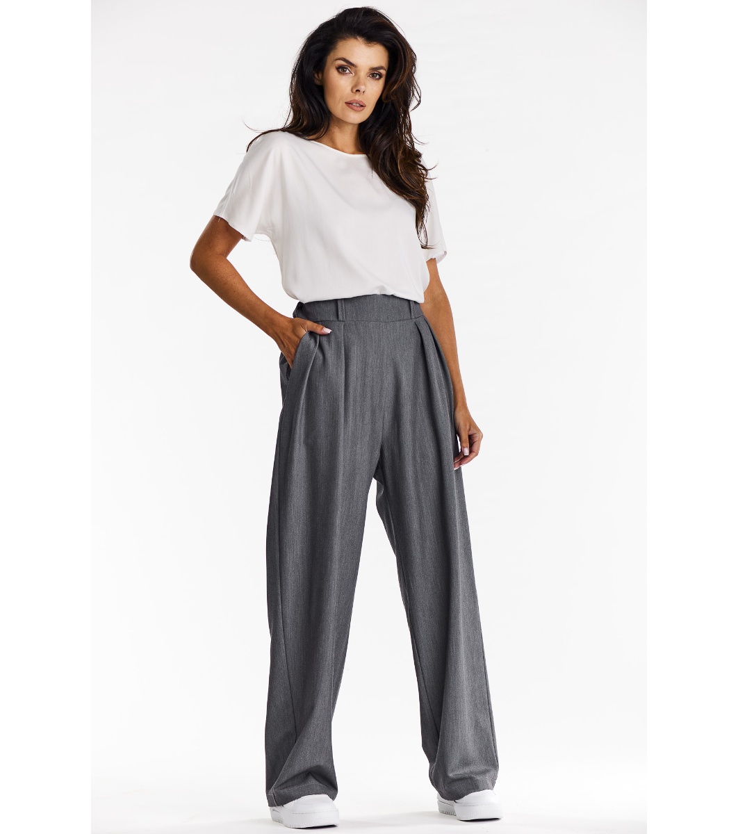 High-waisted trousers. Flared legs. Pants with zipper and front button. They look perfect with a jacket of the same color.Presented size: S, model height: 172 Fabric: 95% polyester, 5% elastaneWash at 30 degrees in a mild detergent, do not bleach, do not tumble dry.Iron on low temperature.The product is made in Poland. High-waisted trousers. Flared legs. Pants with zipper and front button. They look perfect with a jacket of the same color.Presented size: S, model height: 172 Fabric: 95% polyester, 5% elastaneWash at 30 degrees in a mild detergent, do not bleach, do not tumble dry.Iron on low temperature.The product is made in Poland.