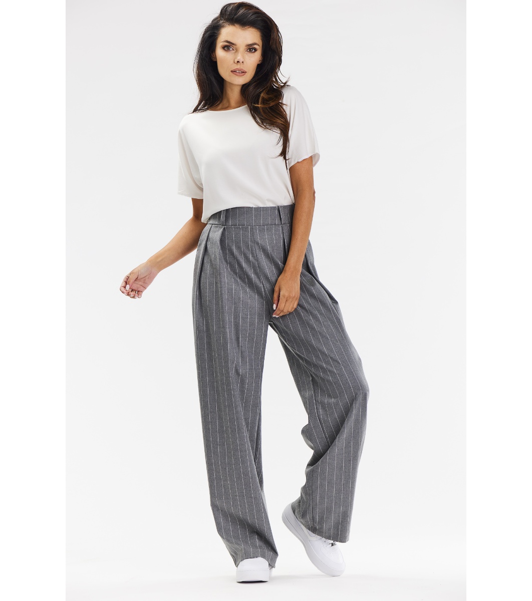 High-waisted trousers. Flared legs. Pants with zipper and front button. They look perfect with a jacket of the same color.Presented size: S, model height: 172 Fabric: 95% polyester, 5% elastaneWash at 30 degrees in a mild detergent, do not bleach, do not tumble dry.Iron on low temperature.The product is made in Poland. High-waisted trousers. Flared legs. Pants with zipper and front button. They look perfect with a jacket of the same color.Presented size: S, model height: 172 Fabric: 95% polyester, 5% elastaneWash at 30 degrees in a mild detergent, do not bleach, do not tumble dry.Iron on low temperature.The product is made in Poland.